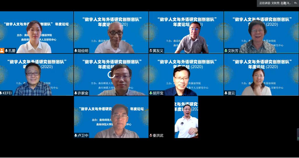 6月6日,由直播8官网app下载 与曲阜师范大学数字人文研究中心联合主办“数字人文与外语研究创新团队”年度论坛在线上举行,党委常委、副校长夏云杰出席开幕式并致辞。论坛由直播8 院长秦洪武教授主持。国内上百所高校和研究机构的300名专家学者参加本次论坛。