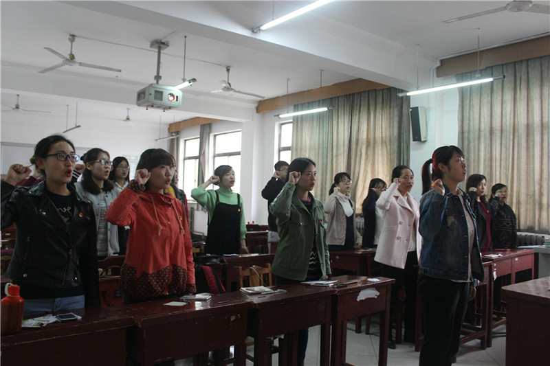 会议开始,周瑞扬介绍本次主题实践活动的相关内容,教育引导党员“亮身份、践承诺、争先锋”,不断深入和提高政治觉悟、增强党性观念、发挥先锋模范作用。强调学生党员要牢固树立党员意识,带头刻苦学习,树立先锋形象,发挥学生党员在学风建设等方面的模范作用,使学生党员真正成为广大学生的表率和模范。接下来党员们佩戴了党徽,并面向庄严宣誓宣誓声音铿锵有力,掷地有声,久久回荡在耳畔,颗颗红心,紧跟党走。随后,周瑞扬宣读了2013级毕业生党员的《倡议书》,向们发出“站好最后一班岗,文明离校党员先锋队”倡议