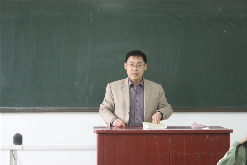 2017年4月10日,直播8官网 本科生党支部佩戴党徽,重温誓词——“我是党员,跟我走”主题实践系列活动在402教室顺利举行。直播8官网 党委副书记曲凤东、本科生党支部书记周瑞扬出席本次会议并发表讲话。本科生党支部全体党员参加会议,会议由周瑞扬主持。