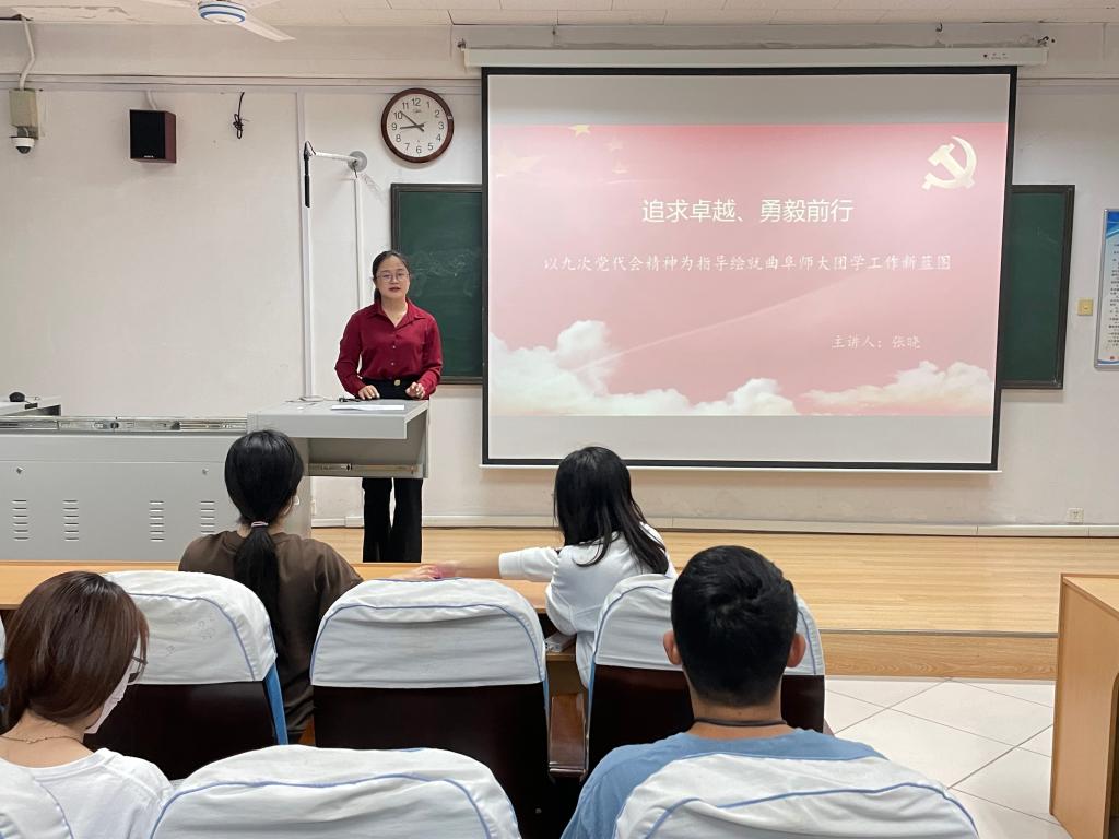团委副书记张晓根据学校第九次党代会报告,详细阐述了大会主题、新发展阶段的历史使命和奋斗目标、奋力开启新征程的主要任务以及一流党建引领学校事业高质量发展等。她强调,全体团学骨干要将学校第九次党代会精神与直播8