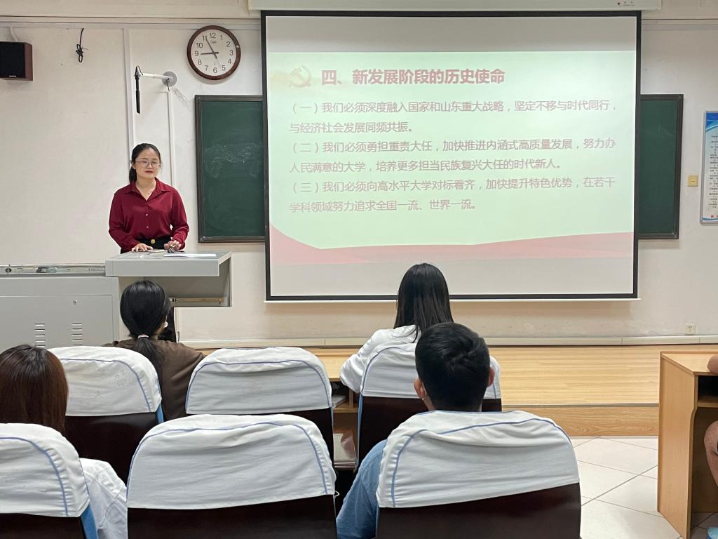 本次主题团课有利于同学们明确自身责任,坚定奋斗目标,加深对于中共曲阜师范大学第九次党代会精神的认识。希望同学们在今后的学习与生活中能够严格要求自我,不忘初心,牢记使命,踔厉奋发,为直播8