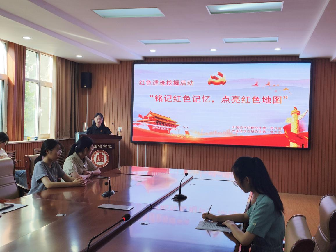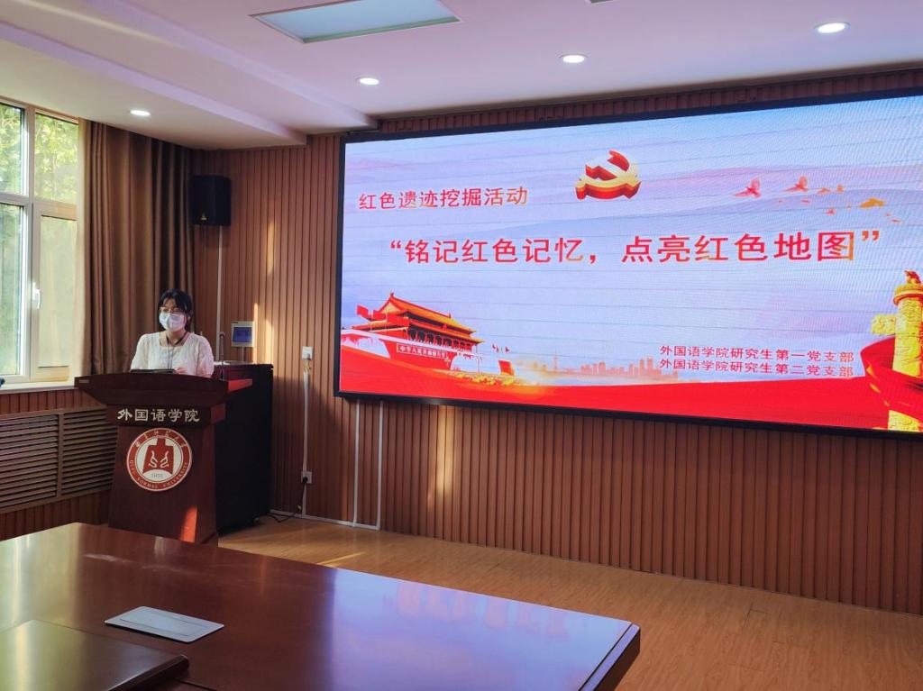 6.“铭记红色记忆,点亮红色地图”之红色遗迹挖掘活动。研究生第一党支部来自菏泽地区的谢婉莹同志和来自滨州地区的李冰清同志与研究生第二党支部来自青岛和泰安地区的党员代表林雨同志和杨丽荣同志分别分享了各自家乡的纪念馆和红色遗迹,并交流感悟,与全体党员共同回顾红色记忆。