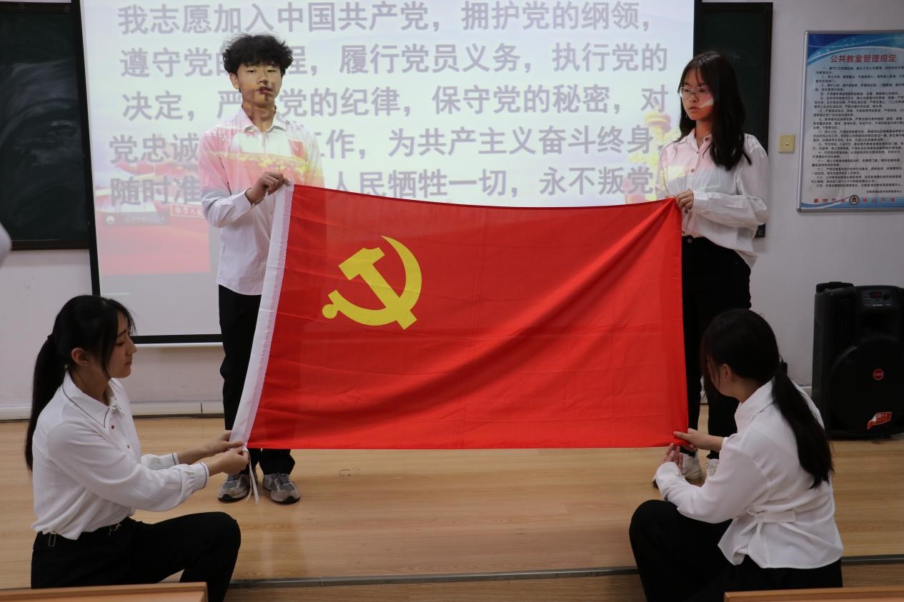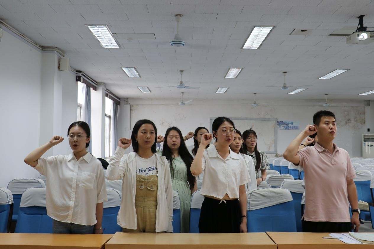3.“不忘初心,宣誓信仰”之重温入党誓词。为进一步加强党员队伍建设,确保党员的高质量发展,保持党员队伍先进性和纯洁性,6月15日,本科生第二党支部开展新党员入党宣誓仪式暨老党员重温入党誓词仪式,该仪式在庄严雄壮的《国际歌》中拉开帷幕。首先,党支部书记王仁杰同志宣读参加入党宣誓的预备党员名单,带领全体新党员同志进行入党宣誓仪式,同时老党员重温入党誓词。组织上入党一生一次,思想上入党一生一世,党员们纷纷表示,将不忘初心,坚定理想信念,立足本职工作与学习,积极发挥党员的先锋模范作用。此次入党宣誓大会有助于帮助全体党员铭记入党誓词,坚定入党初心,恪守承诺,在今后的学习生活中自觉担负起责任与使命,坚定共产主义理想信念,明确努力方向,用实际行动表达对党的心声,做合格的共产党员。