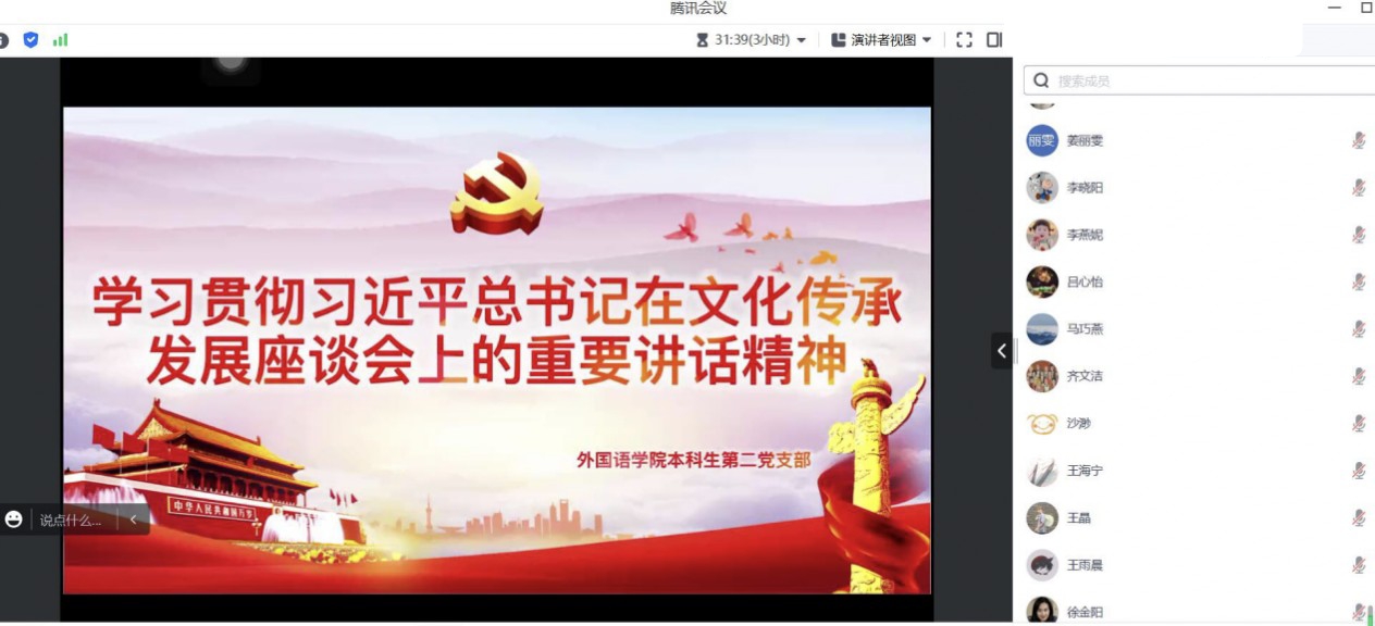 本科生第二党支部于7月1日召开学习贯彻习近平总书记在文化传承发展座谈会上重要讲话精神线上理论学习会。