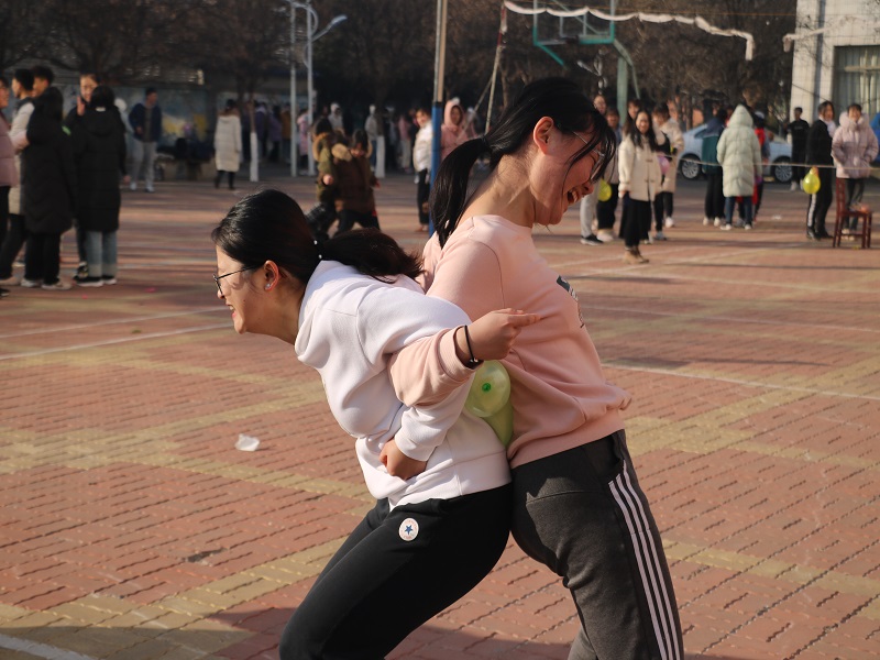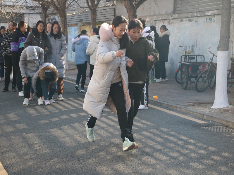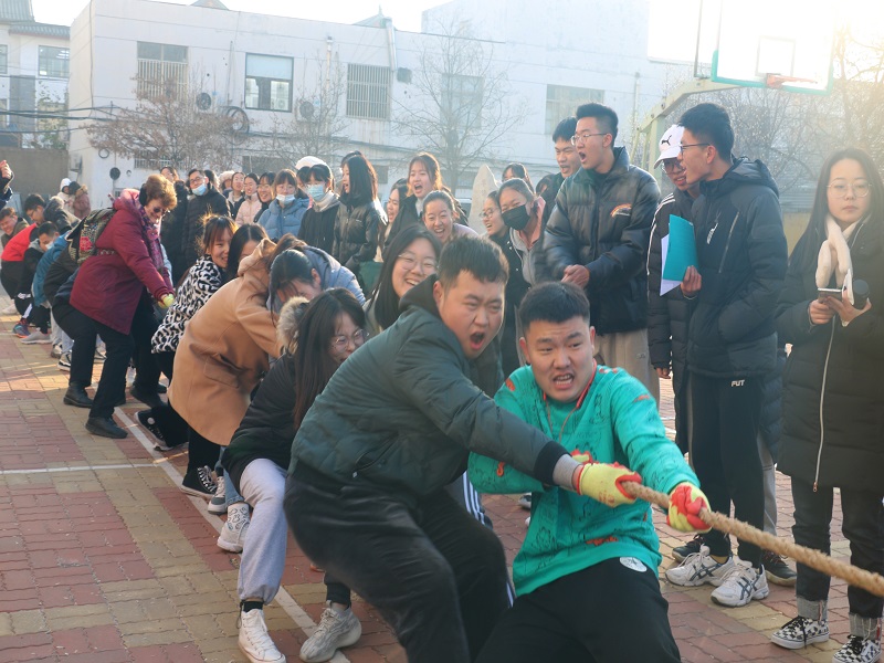 伴随着同学们的欢呼声,本次运动会拉开帷幕。本次运动会比赛项目丰富多样,包括师生跳绳比赛、年级拔河比赛、年级跳大绳比赛、乒乓球接力赛、个人定点投篮比赛、两人三足等比赛项目。年级拔河比赛调动了全体师生的热情,2018级辅导员赵文彬、2019级辅导员张晓、2020级辅导员王伟和外教Ann、Clint等教工代表参与其中。哨声一响,参赛师生双手紧握长绳,降低重心,全力以赴。整个赛场群情激昂,热火朝天,一扫冬日的寒冷,展现了外院师生斗志昂扬、团结友爱的精神风貌。运动场上,师生默契配合,全身心地投入到比赛中,尽情享受运动会的乐趣。其中,两人三足比赛竞争激烈,参赛选手腿绑腿,双手互搭,裁判一声令下,参赛选手奋力奔跑,展现了直播8官网app下载