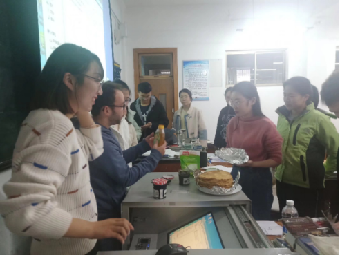 系楼前或在教室与外教,会员交流心得,提高对法国的认知与了解,提高法语水平,增长见识。