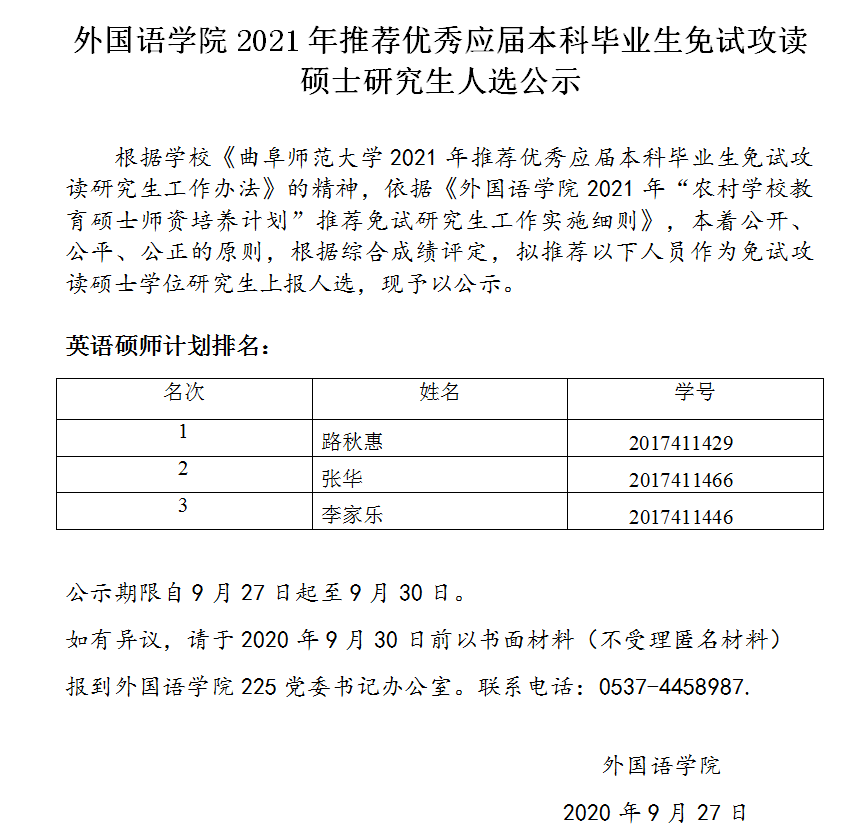 直播8官网 2021年推荐优秀应届本科毕业生免试攻读硕士研究生人选公示