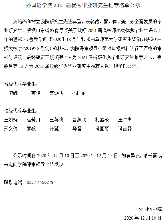 直播8官网 2021届优秀毕业研究生推荐名单公示