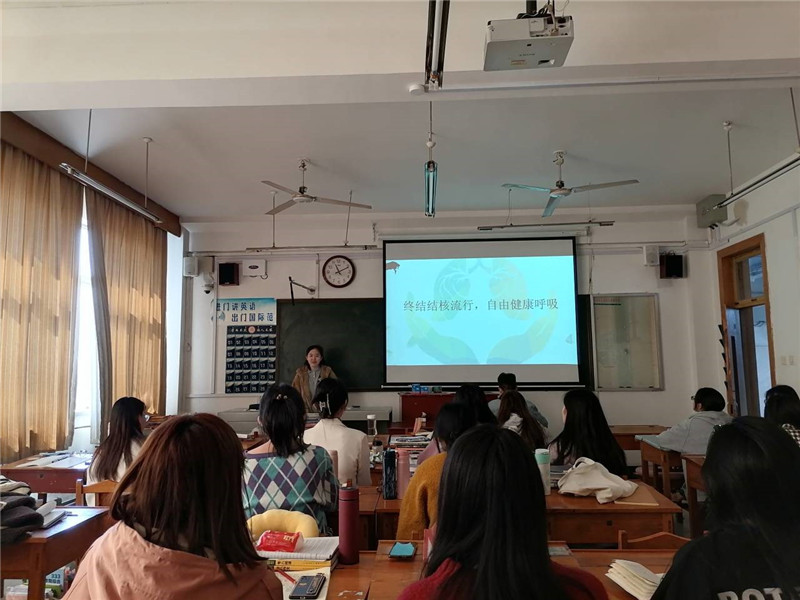 首先,主持人播放了一个关于结核病的短视频,引出了本次活动的主题,加深了同学们对结核病的认识和了解;随后,主持人针对病症发生的原因、易感人群、预防措施等进行了详细讲解。现场气氛活跃,同学们积极互动,热烈讨论;最后,主持人对本次活动进行了总结,并让大家平时在宿舍、教室、图书馆等场所时,要经常开窗通风,保持空气通畅。另外,要少去学校外面人员相对聚集的地方。